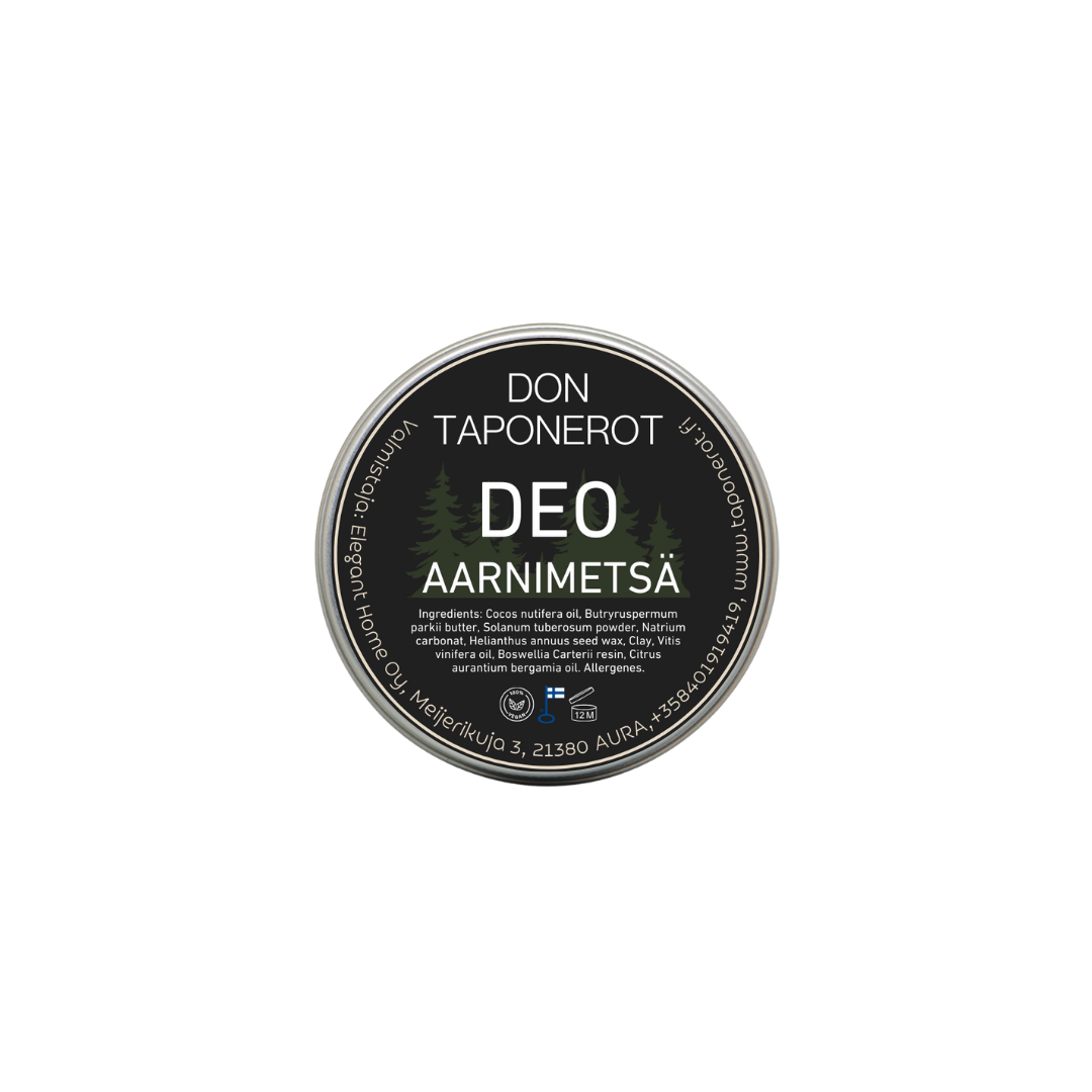 UUTUUS! DEO Aarnimetsä on tehokas ja hellävarainen voidedeodorantti, joka pitää sinut raikkaana läpi päivän. Tämä luonnonmukainen deodorantti on suunniteltu erityisesti miehille, jotka arvostavat puhtautta, toimivuutta ja ihon hyvinvointia. Voidemainen koostumus levittyy helposti, hoitaa ihoa ja ehkäisee epämiellyttäviä hajuja tehokkaasti mutta hellästi. Raikas ja hienostunut tuoksu viimeistelee kokonaisuuden. Vegaaninen.